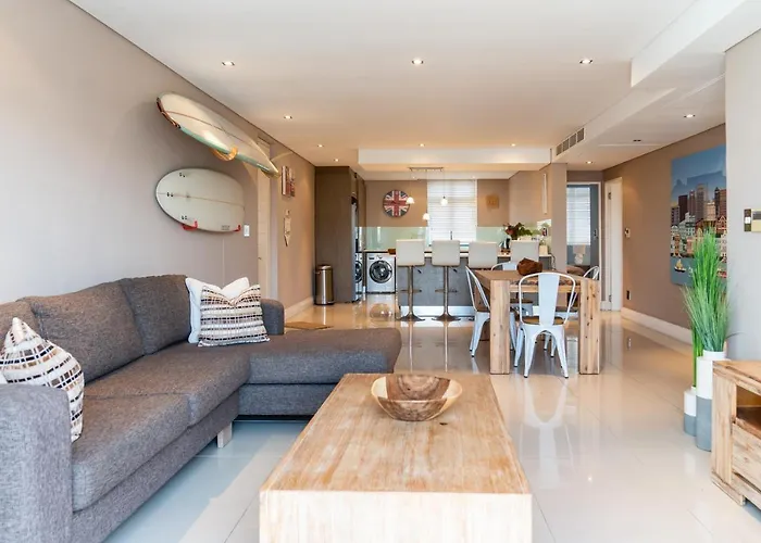 The 2-room Modern Beachfront Eden On The Bay 210- 2 Bedroom, 2 Bathroom Cape Town apartment is nestled in the Blouberg Beach district of Cape Town, just 600 metres from Seaside Village Shopping Centre.
